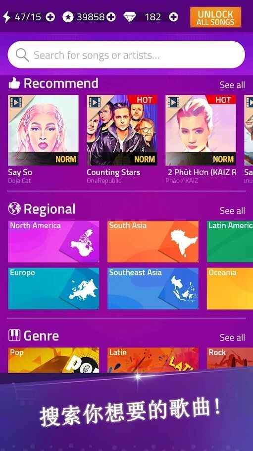 3、众多的乐队和曲库等你进行游玩挑选,每一首歌都是注入灵魂般的冒险和节奏体验。