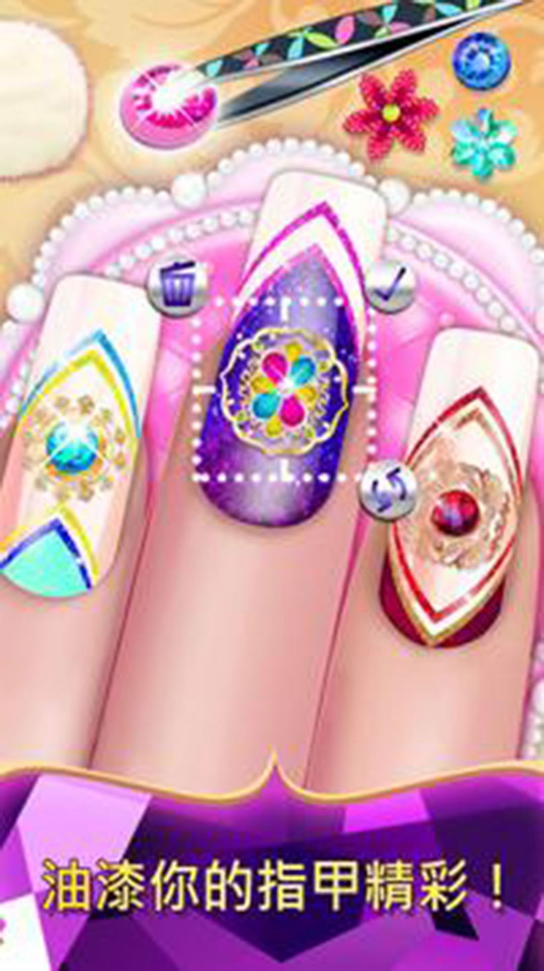 3、以美甲玩法为核心的休闲游戏,玩家在游戏中可以选择自己喜欢的素材来制作各种不同特色的美甲。