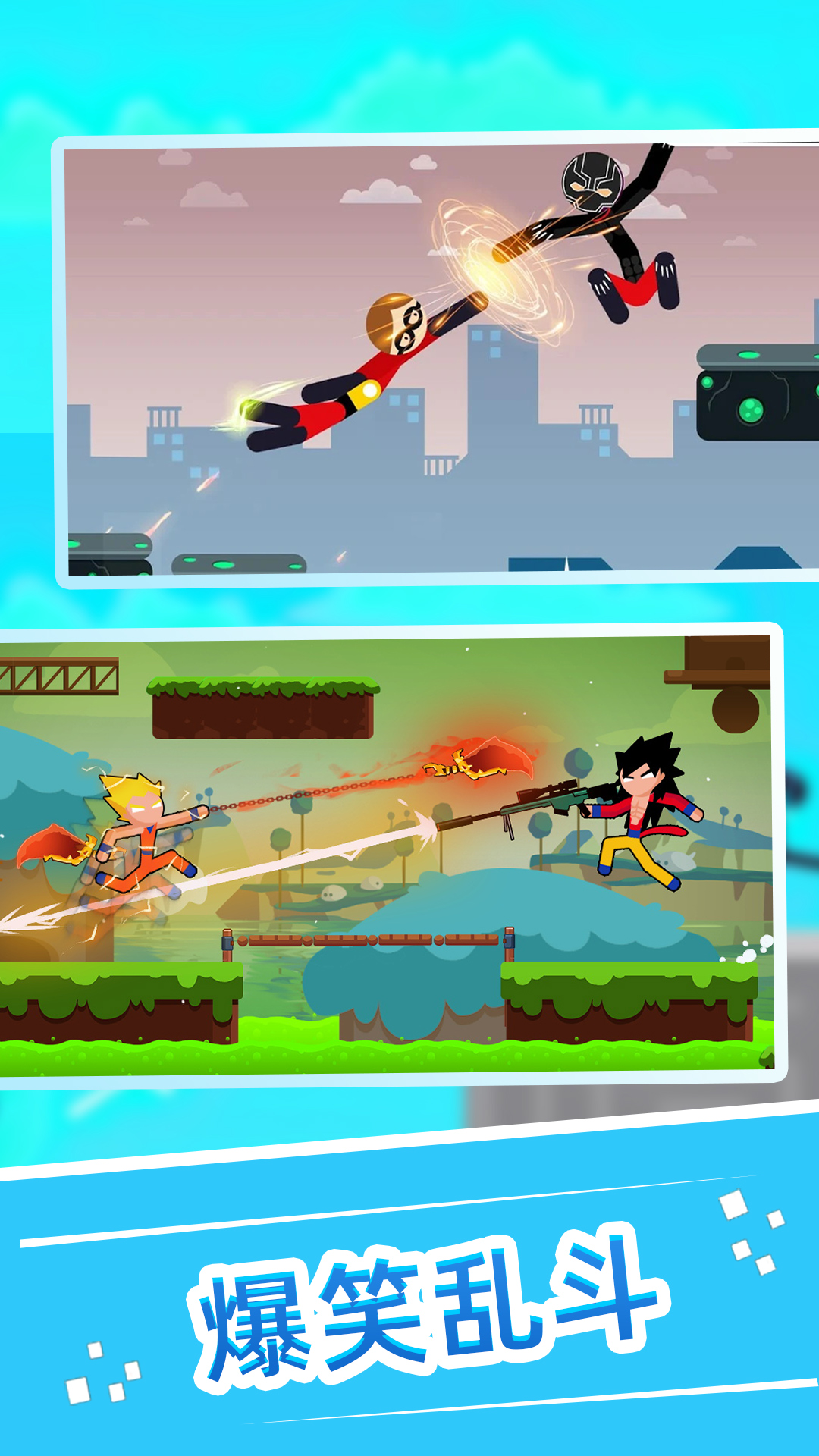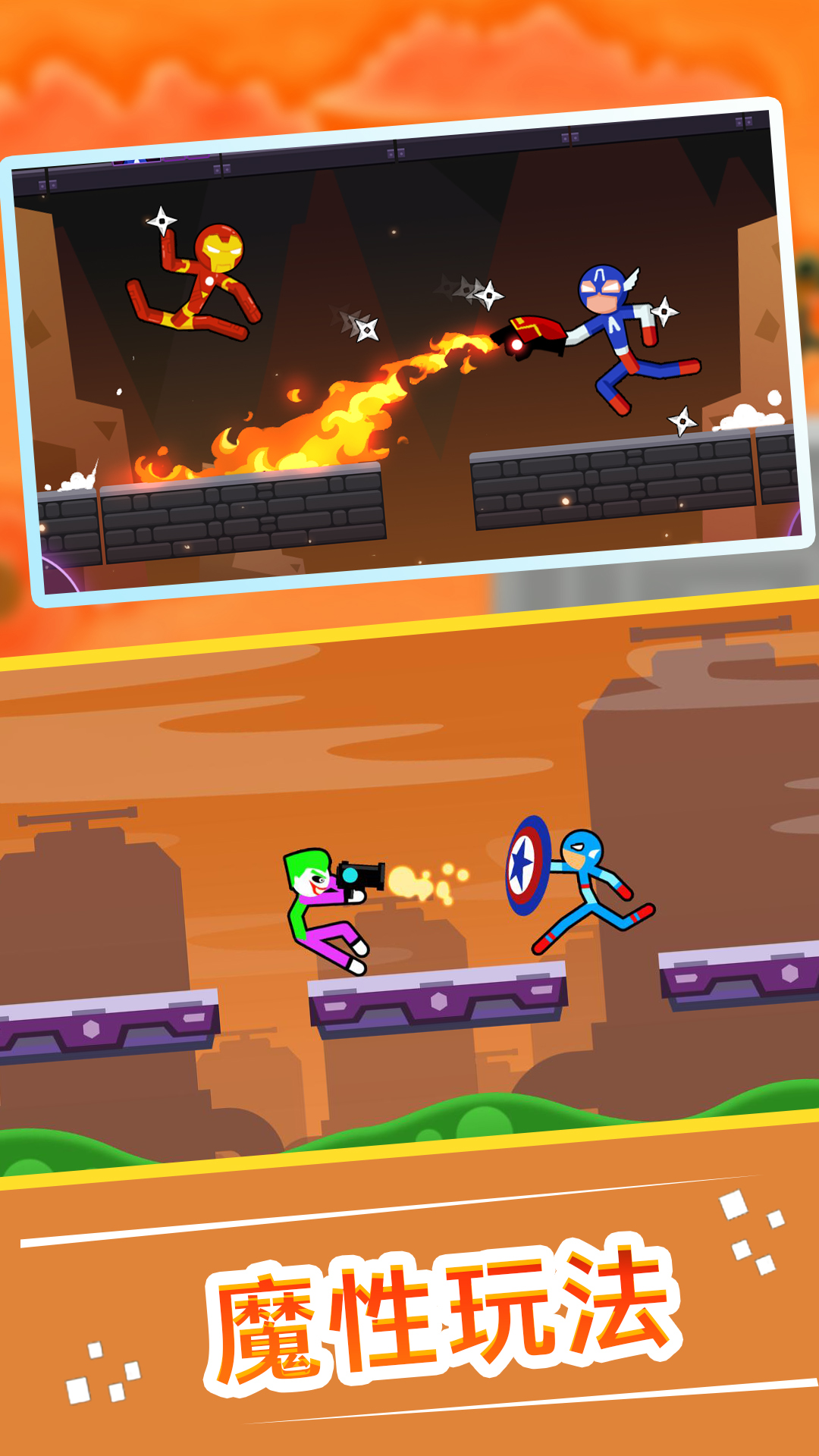 1、精彩火柴人题材的热血战斗游戏,诸多玩法,自由尝试。
