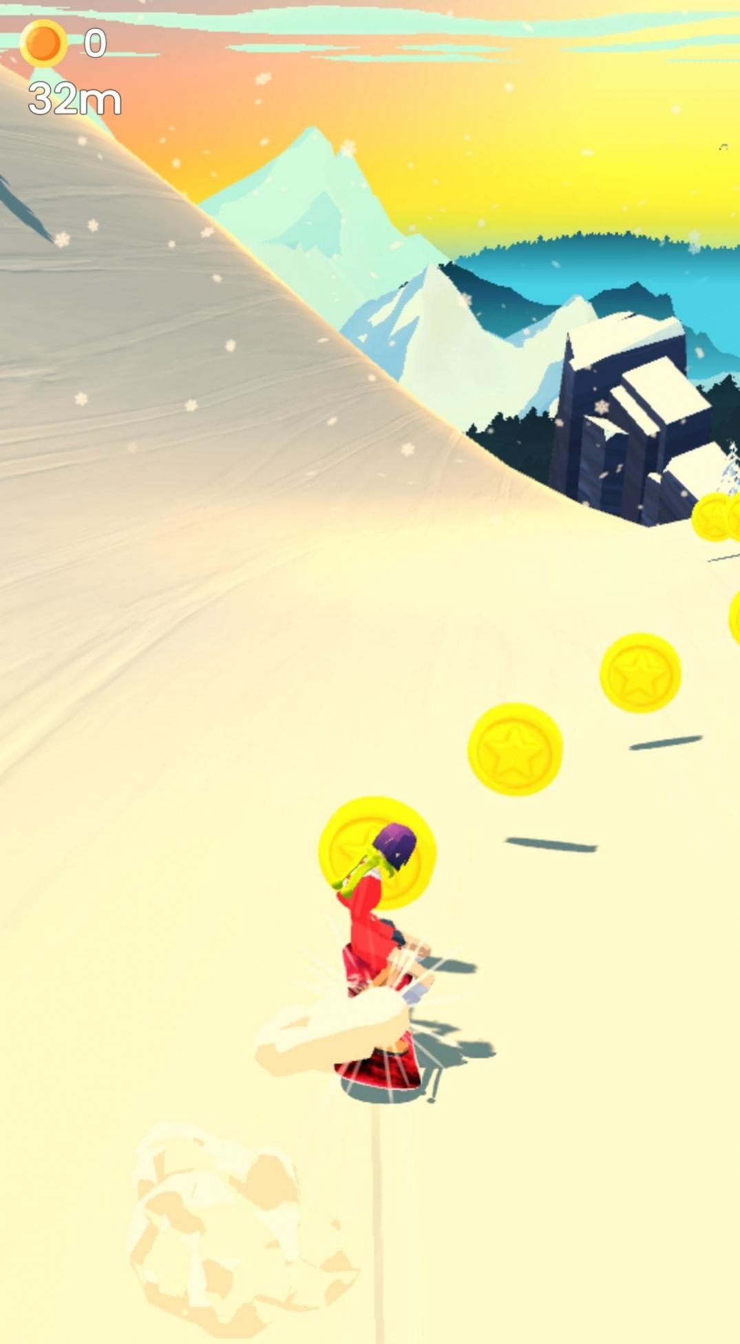 1、简单的指尖操作方式,左右滑动屏幕,控制滑雪动作和姿势。