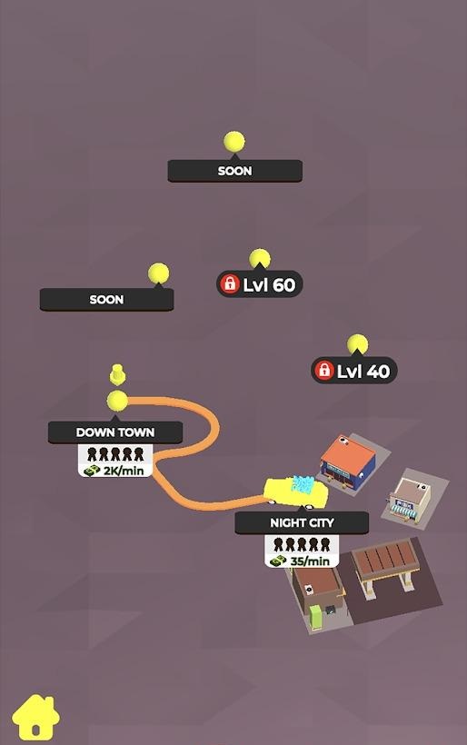 1、采用放置挂机模式,随时点击屏幕加快汽车运行速度;
