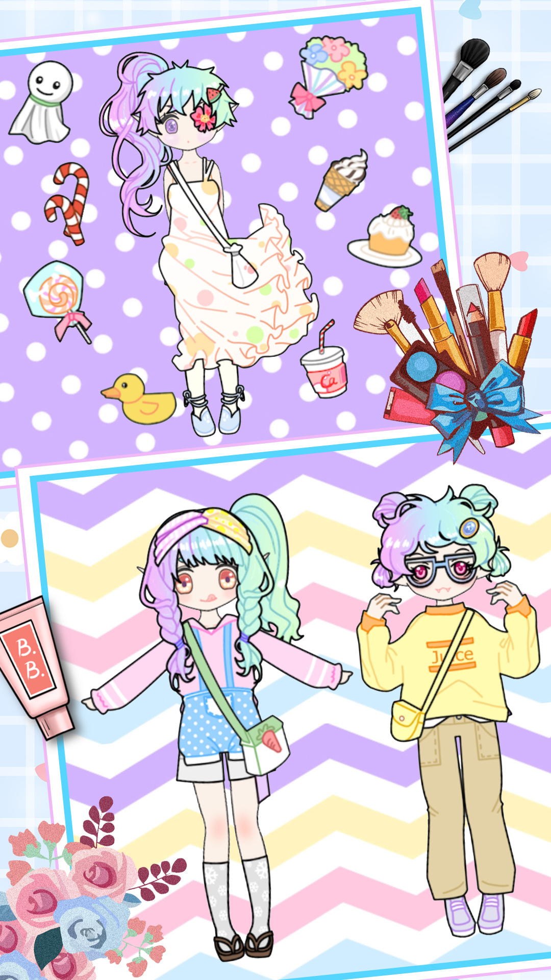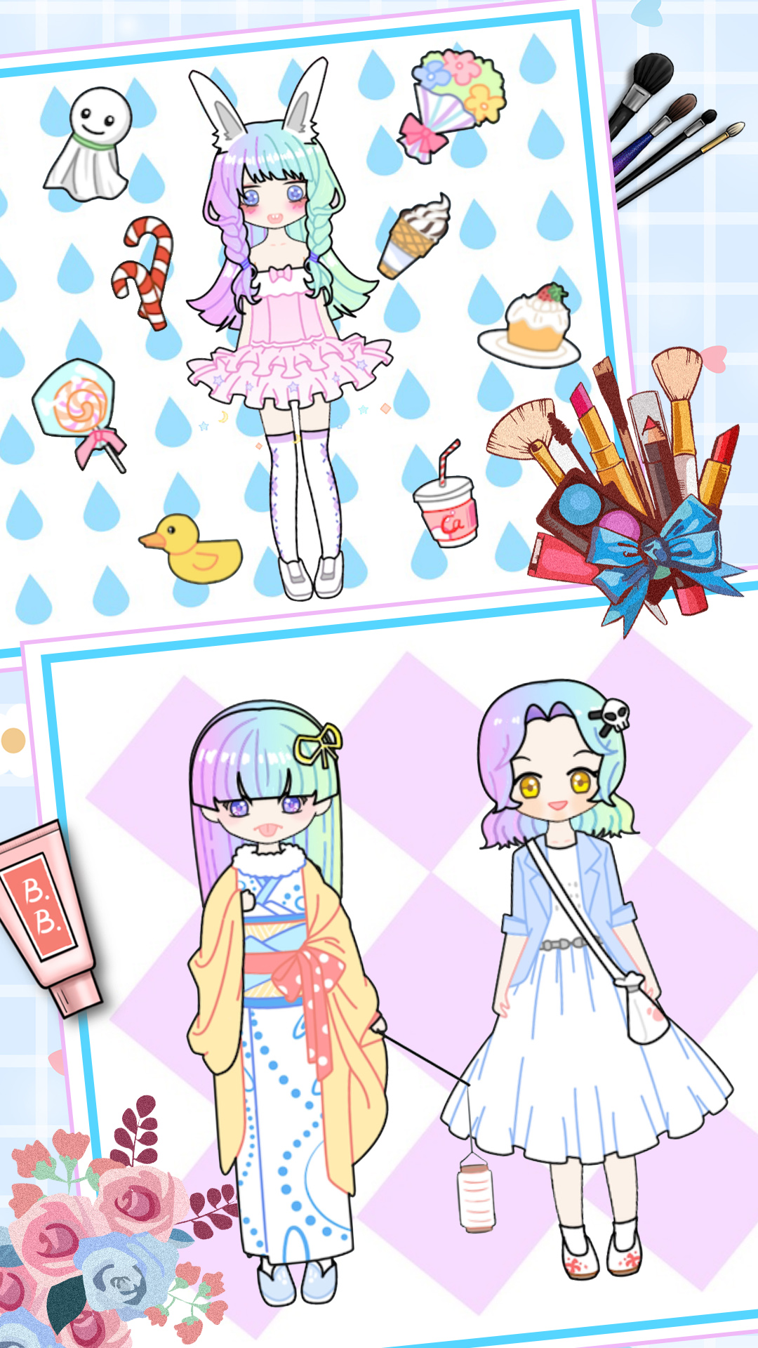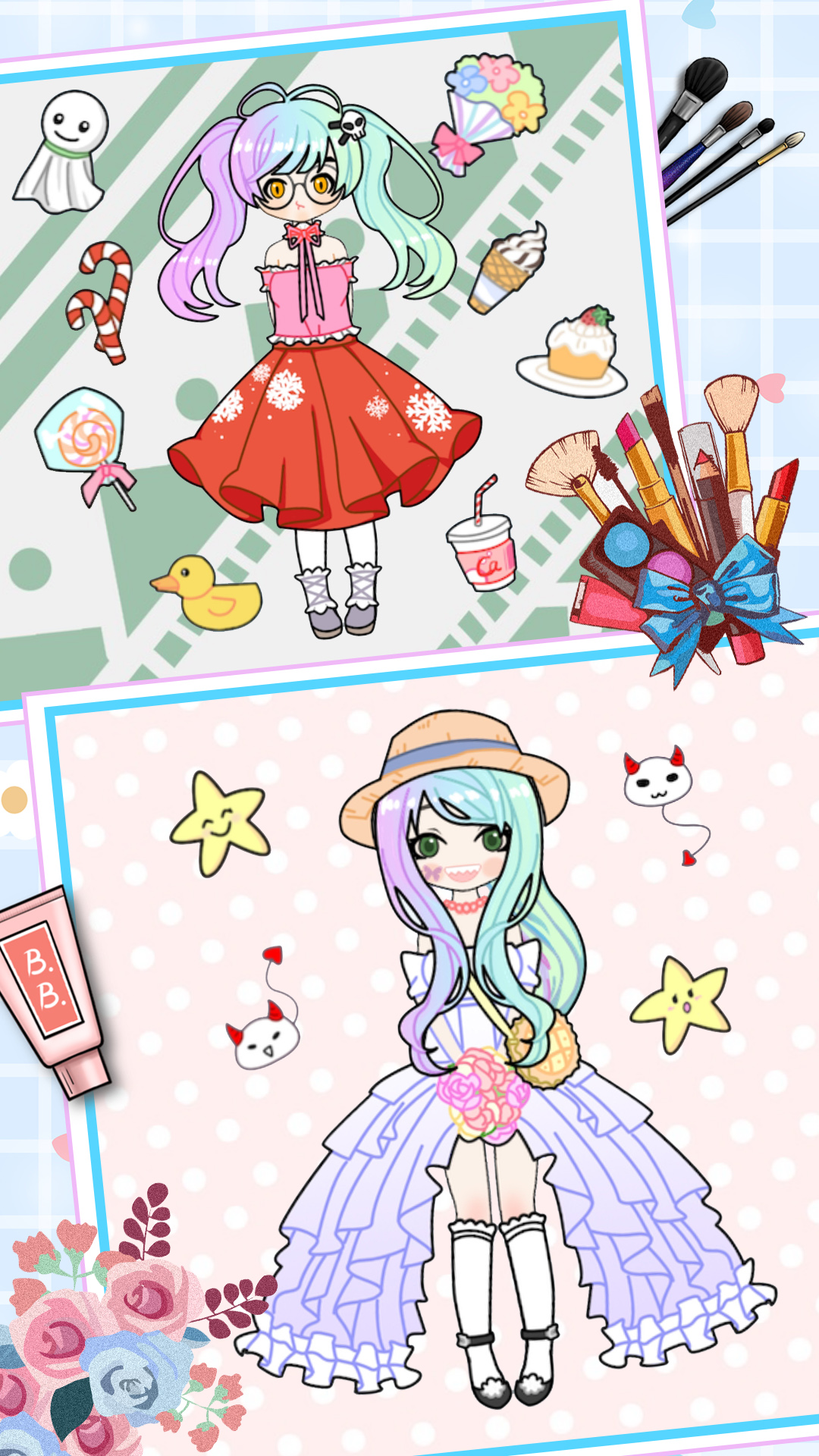 每个人都可以发挥自己的艺术才能,用各种化妆品来装点公主们的容貌,让她们看起来更加可爱。