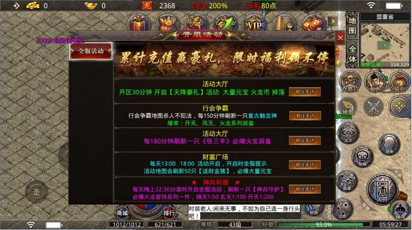1.上古神器随时可用,大量的竞技玩法等着你加入,全新的冒险可以安排。