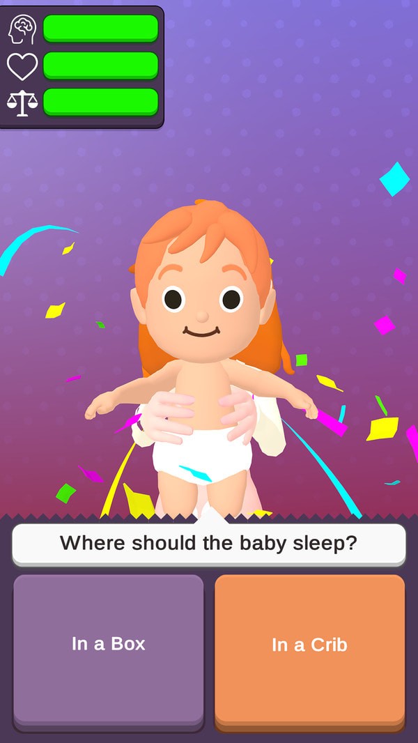 父母的抉择游戏是一款趣味养成类游戏,游戏中玩家将是一名有孩子的父母,你需要做的就是为孩子考虑一切,为孩子做出最好的决定。体验做父母的感觉,十分的奇妙,养育宝宝健康的成长,极具有趣味性的游戏内容。快来试试看吧!