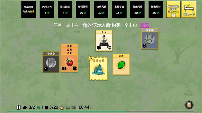 3.卡牌堆叠合成玩法,自由修仙,完成各种任务。