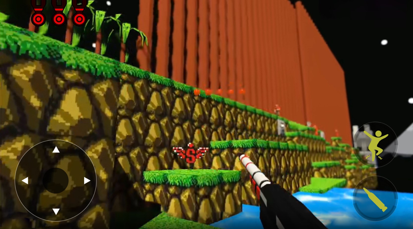 1、在3D像素世界,拿起自己的武器去闯关吧!还原了经典的魂斗罗玩法,带给你不一样的射击闯关。