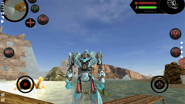 3、操控你的3D机器人到海中,城市中模拟真实战斗和破坏,清除掉你面前见到的所有事物。