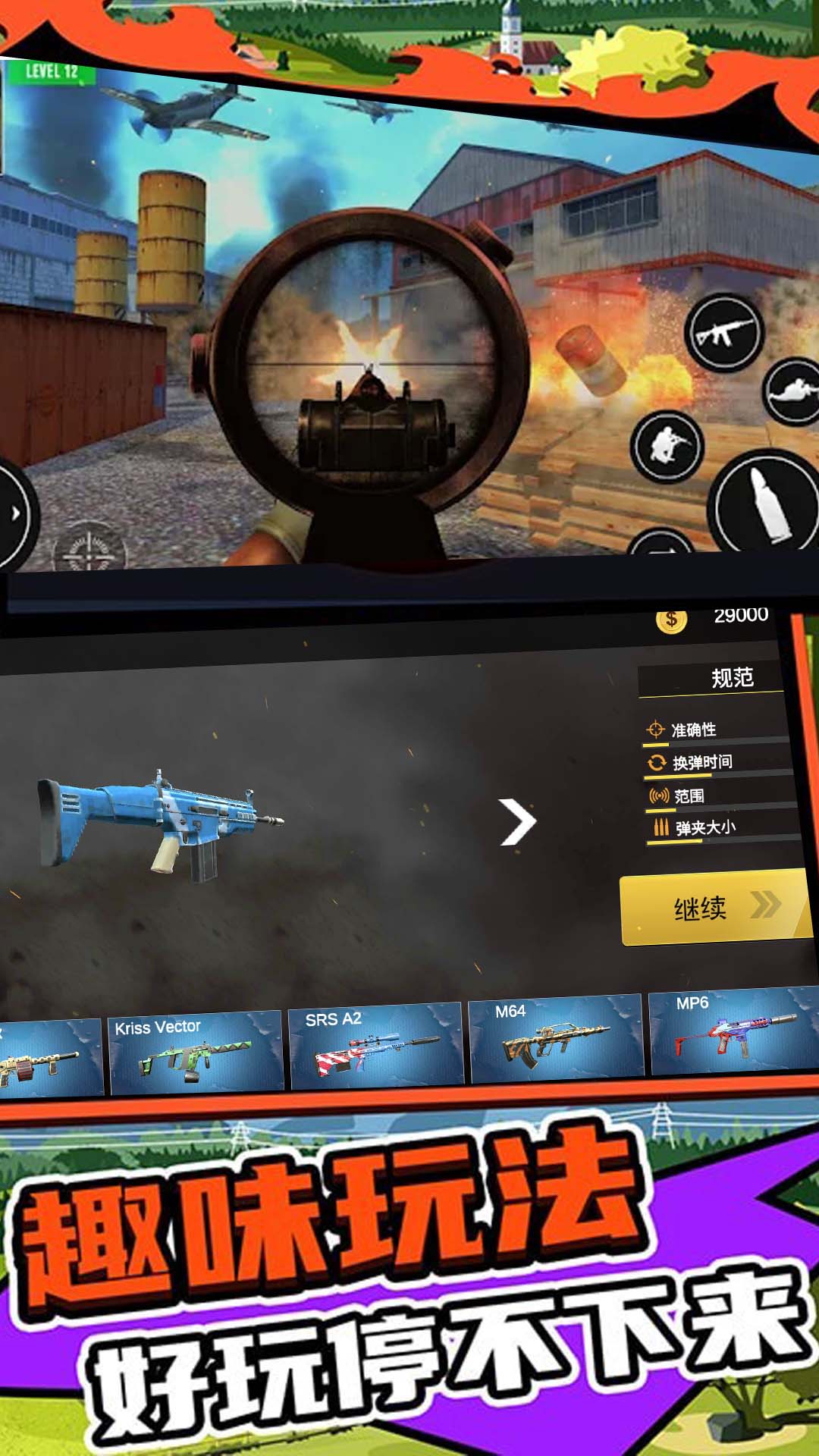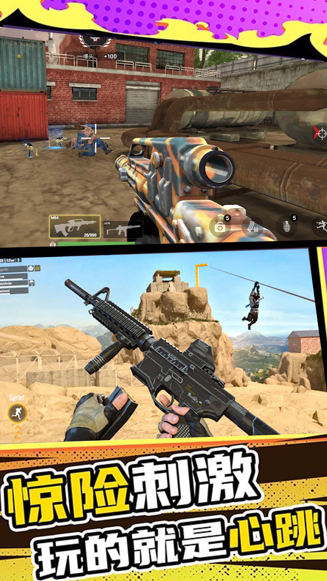 2、在吃鸡战场中感受最刺激的射击大战,大量玩家都将参与进来,你要在枪林弹雨中生存下来。