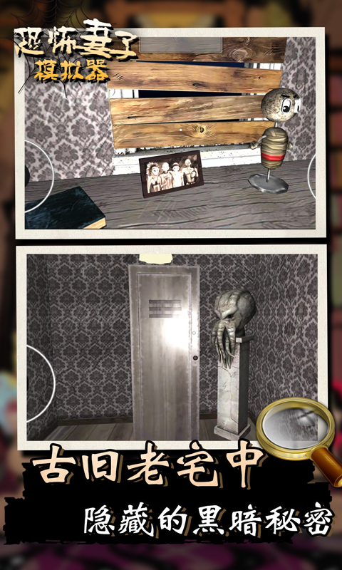 恐怖妻子模拟器游戏,游戏背景设置在一座古老的城堡中。这是一款轻微恐怖的日式卡通风格的游戏。在这个游戏中,玩家是一个失去记忆的人。在一栋旧房子里醒来,一个陌生的女人自称是你的妻子。你很快就意识到有什么不对,但你假装相信是为了欺骗这个神秘的女人。在游戏探索中,你会发现更多古宅的秘密,收集线索并逃离这里!
