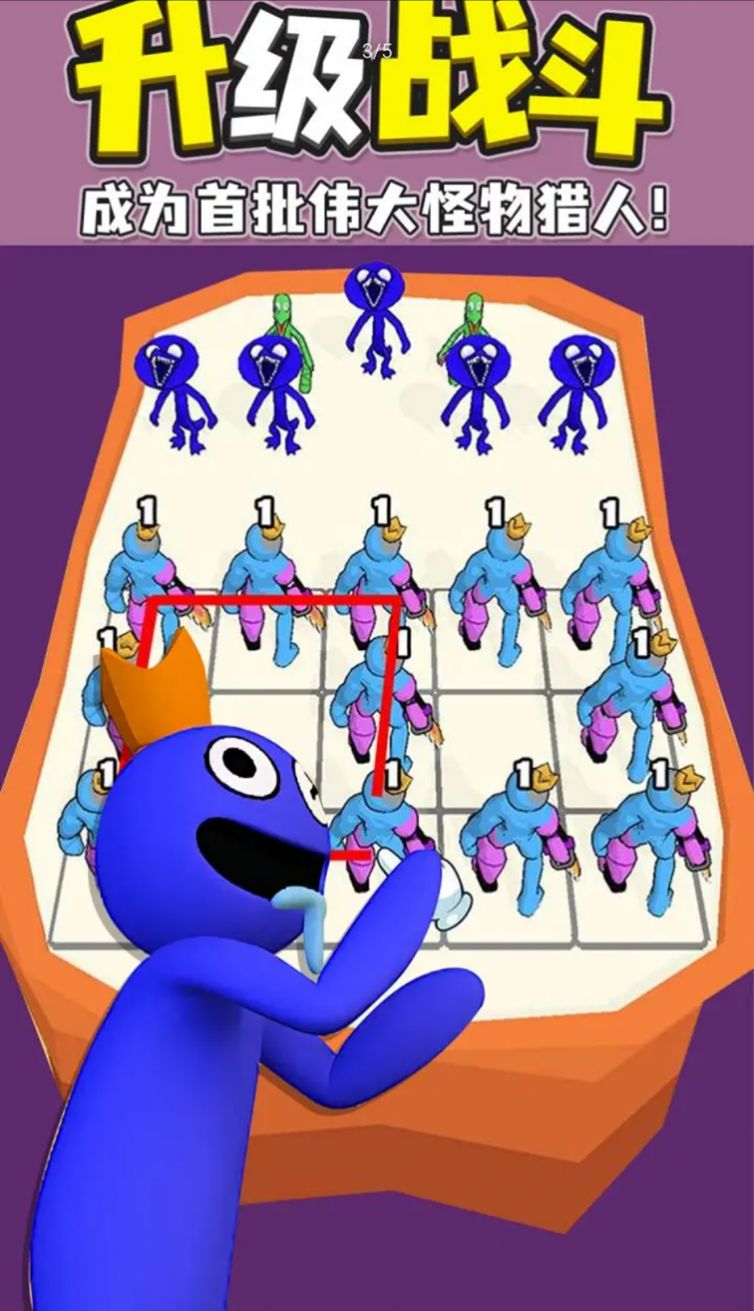 1.采用了简单的合成操作玩法,把相同颜色的士兵合成在一起就能够获得更加强化的形态。