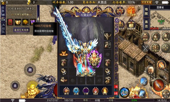 2、拥有各种各样对的神装羽翅,专属的技能和装备,轻松战力飙升,击杀世界boss;