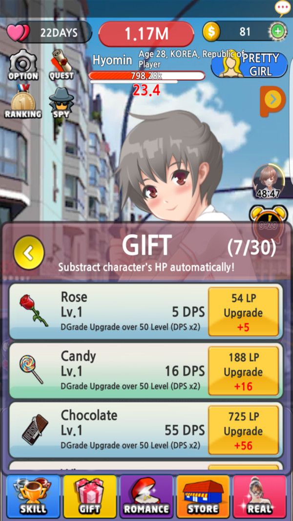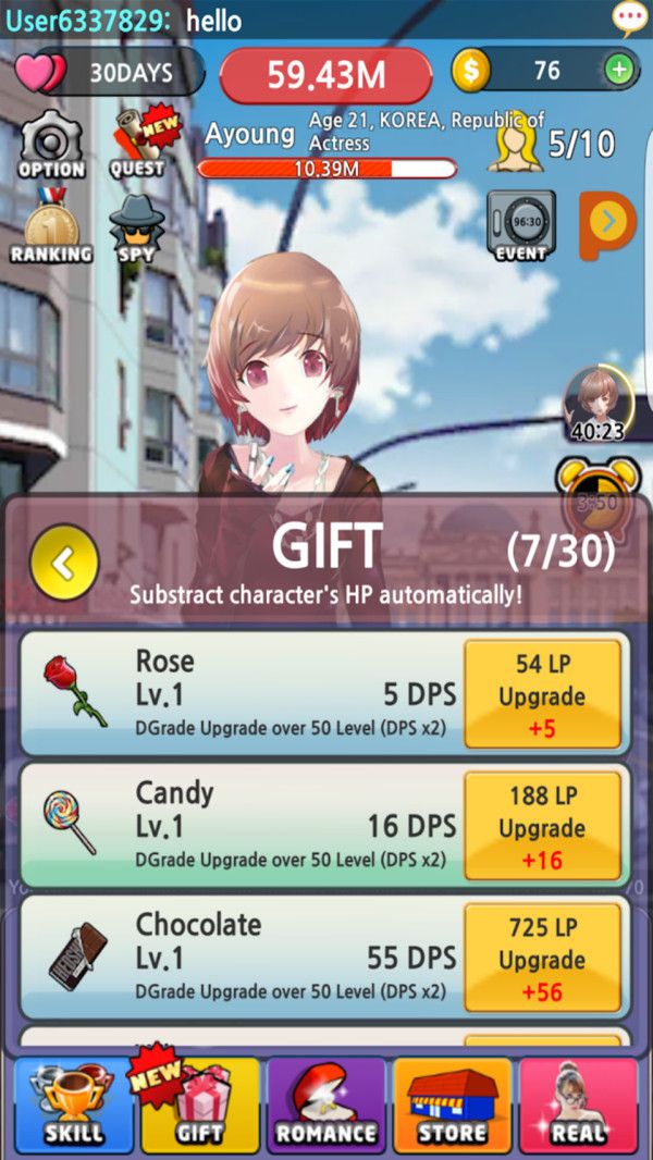 2、并且可以通过购买各种玫瑰花,棒棒糖,巧克力等小礼物来提升与其他男性角色的好感度;