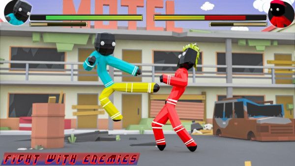 2、与你的火柴人城市敌人一起踢拳,摔跤。