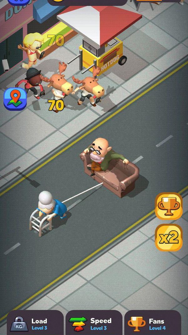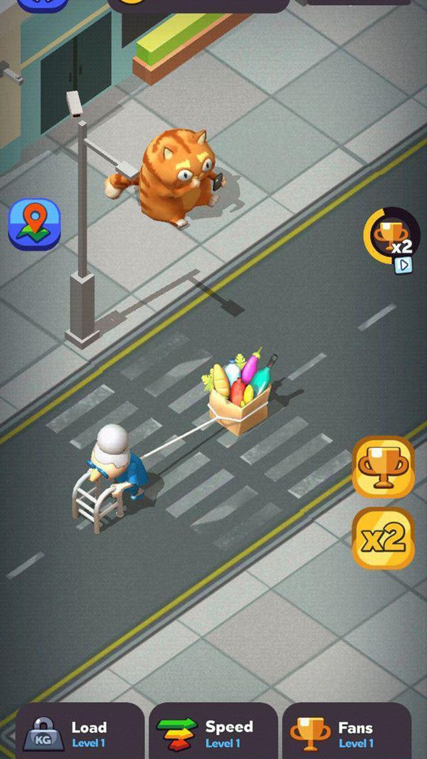 2、一开始老奶奶跑得很慢,玩家可以通过收集金币来获得道具加快速度。