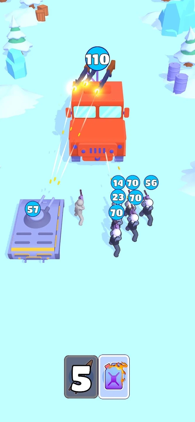 2、收集更多资源,升级自己的军队和武器;