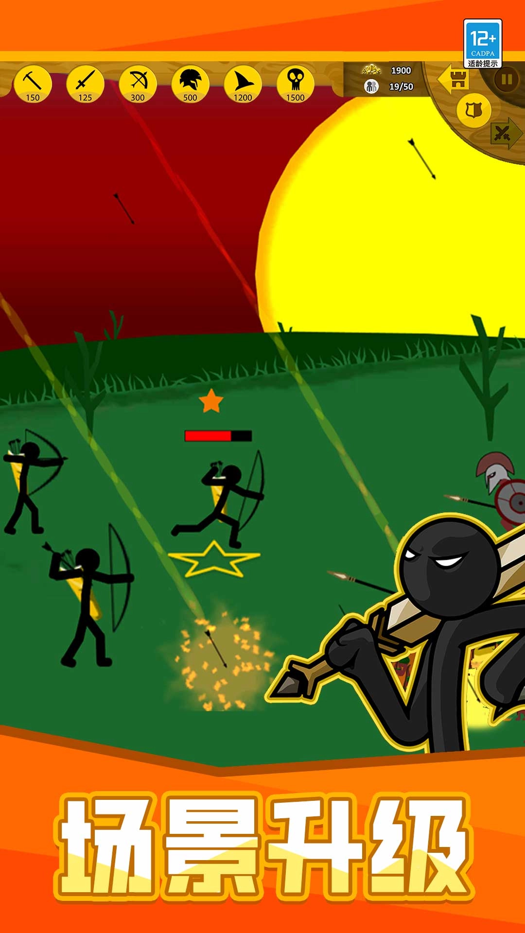 3、经过不断战斗比拼,轻松提升火柴人等级,和强大敌人对战。