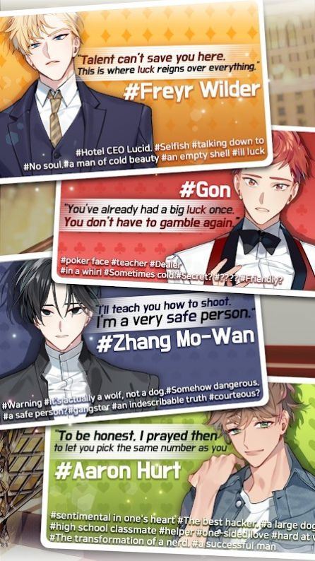 2、玩家在游戏中能够选择4位男神可以与自己互动,感受甜蜜浪漫的爱情。