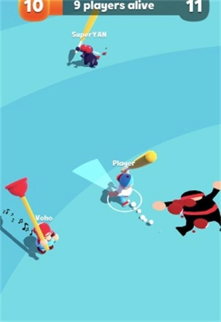 把所有的敌人都砸到你的大锤地下去吧,玩家要控制好武器的距离,小心别让别人抓住打到自己机会,人物十分魔性。