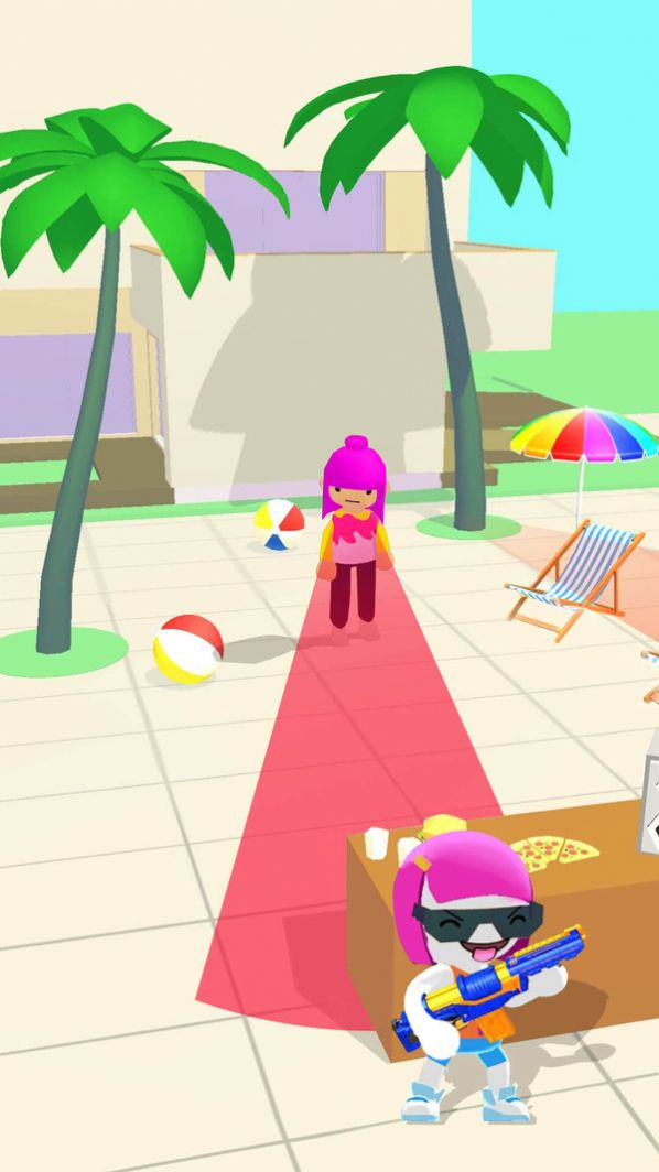 3.玩家和小伙伴玩起了用彩弹互相练习射击的游戏,通过不断解锁新颖玩具枪和利用障碍物的掩护。