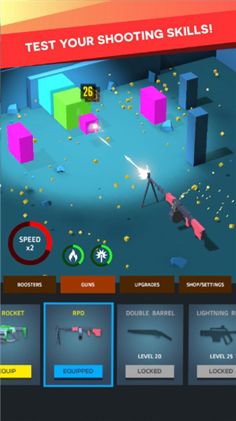 在游戏中你的眼前会出现非常多的障碍物,玩家需要使用自己手中的武器来进行射击,将所有的障碍物都粉碎个干净,不断的提升自己的实力。