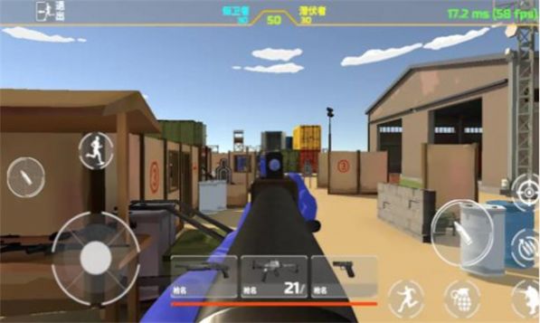 有趣的吃鸡射击游戏,游戏的气氛是红蓝相间的。游戏中有很多种战斗武器。
