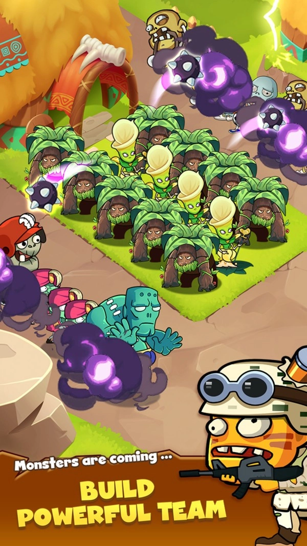 2.滑动并合并您的植物以解锁新武器 - 通过将两个相同的植物合并来解锁新的强大植物。