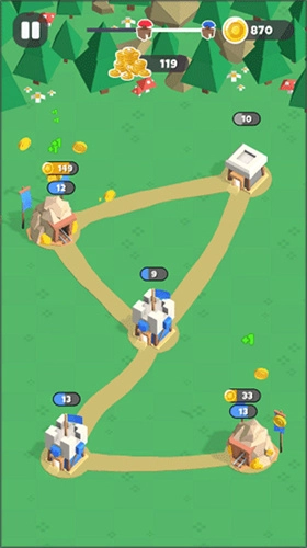 1.击败敌军并占领他们的城堡,将相似的火柴人弓箭手合并在一起进行升级,实力大增。