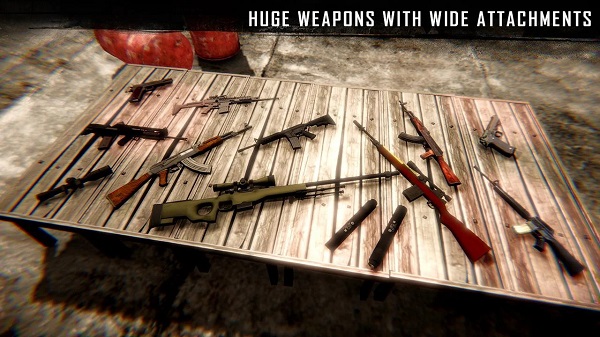 2、游戏采用第一人称视角,超多不同的武器帮助你更加轻松地去获胜哦,所有的厮杀都是热血的。