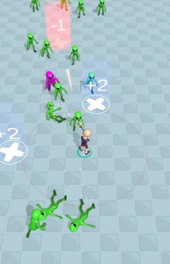 摇杆控制角色移动,在遇到外星人的时候不要让它靠近角色的红色范围之内;