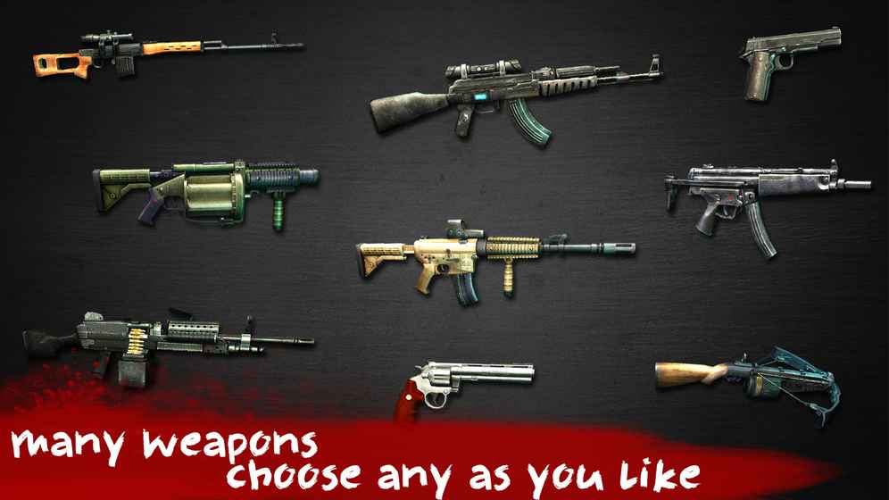 1.暗黑的主题色彩搭配,利用各种武器,赶走前方出现的这些僵尸。