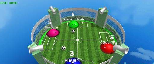1、简约风格的球场格斗游戏,玩家通过踢球直接攻击对方。