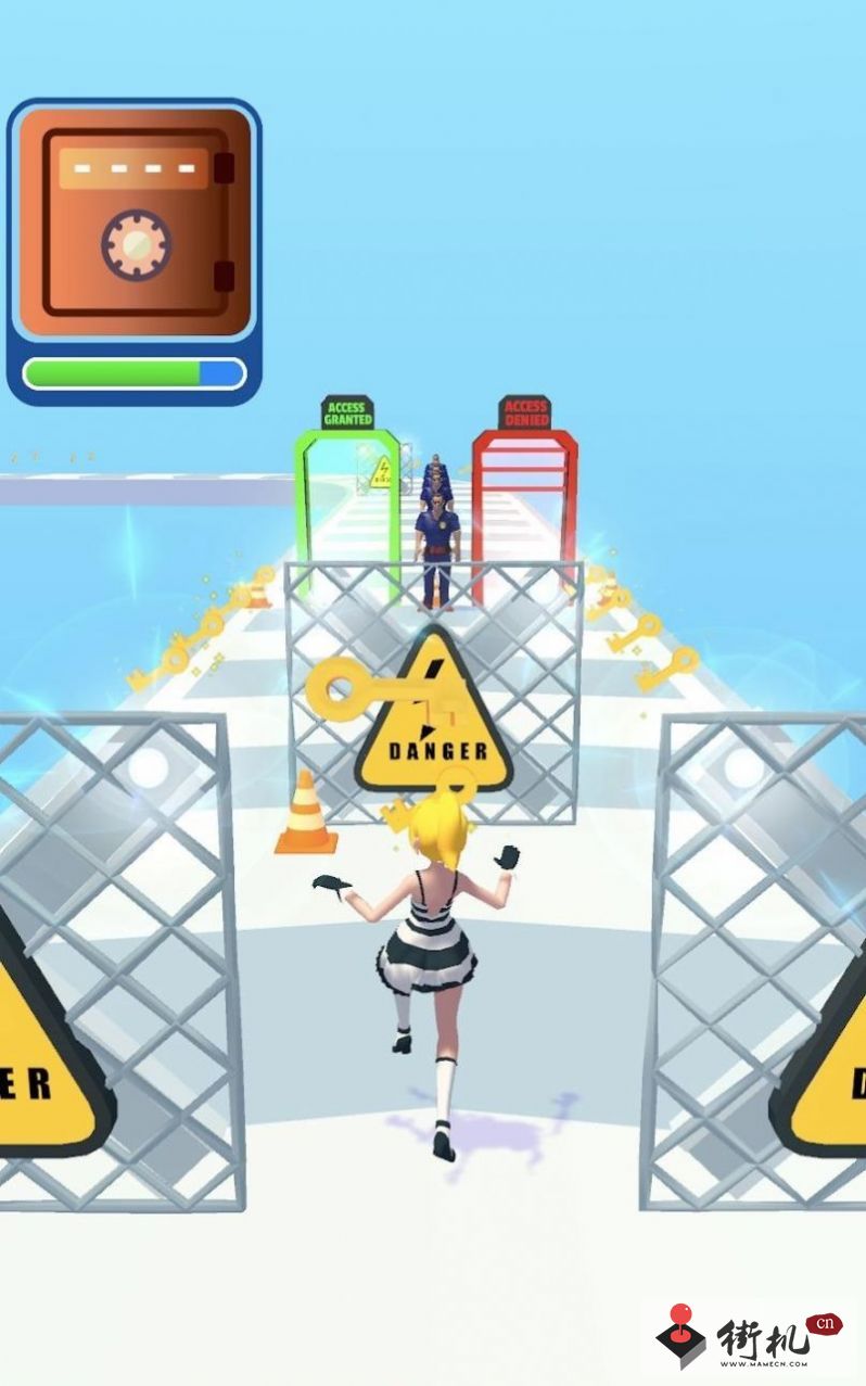 1.玩家将扮演女贼的角色,使用伪装跑到底,然后打开保险箱,将钱或宝藏放在里面;