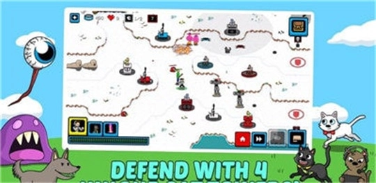 猫的防御塔这是一款吸引不同年龄段玩家在线进行玩耍的策略塔防游戏,体验一场全新的战争游戏玩法,游戏当中为玩家准备了许许多多可爱的猫咪形象,正因为有着可爱的卡通风格,才不会让玩家感受到激烈的游戏内容,体验特别温馨的挑战过程,带领小猫咪完成游戏任务,击败敌人获取游戏奖励。