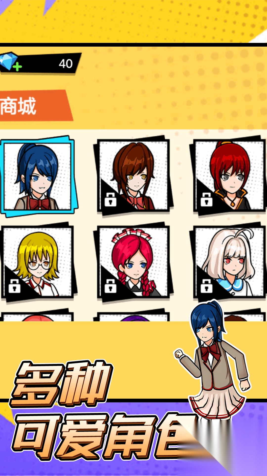 2、采用Q版像素的风格,拥有丰富多样的热血高校场景,呆萌有趣的角色。