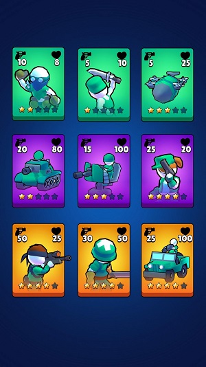 《火柴人战争:合并战》是一款以火柴人为主题的战争策略游戏。该游戏玩起来并不会很累,操作也是比较简单的。玩家直接招募火柴人士兵进行训练,按照不同的兵种来培养士兵。不同的兵种拥有不同的作战能力,能够给玩家的战场带来很好的游戏体验。在游戏中享受最原始的战争策略对决,快来玩耍吧。