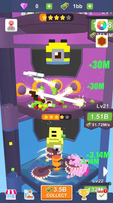 3、此外,空闲像素粉碎机游戏还配有特殊技能和升级机制,例如像素块的速度和体积。