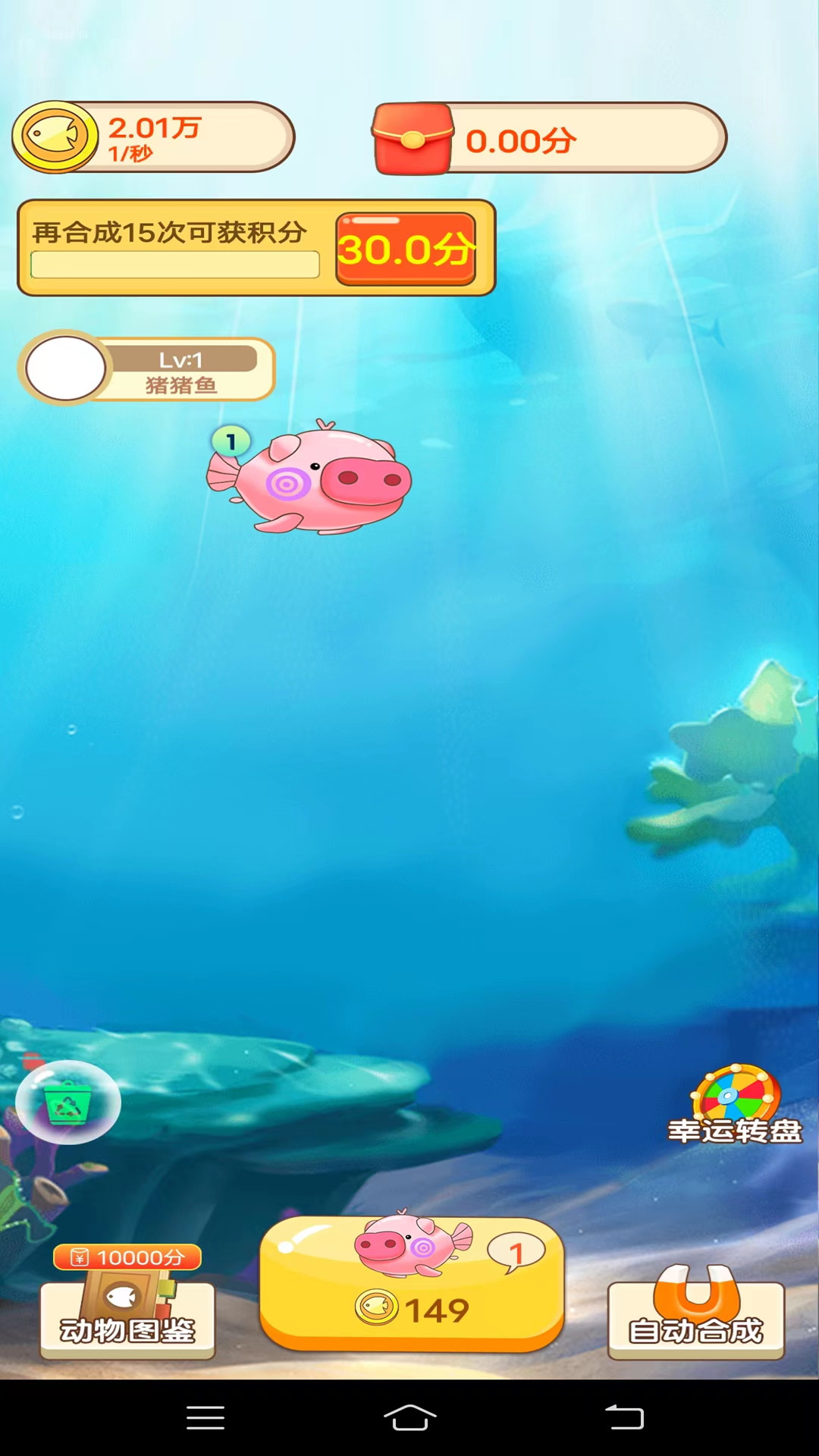 2、游戏的操作都是非常简单的,只要将相同的小鱼进行合成就行,合成就可以获得奖励。