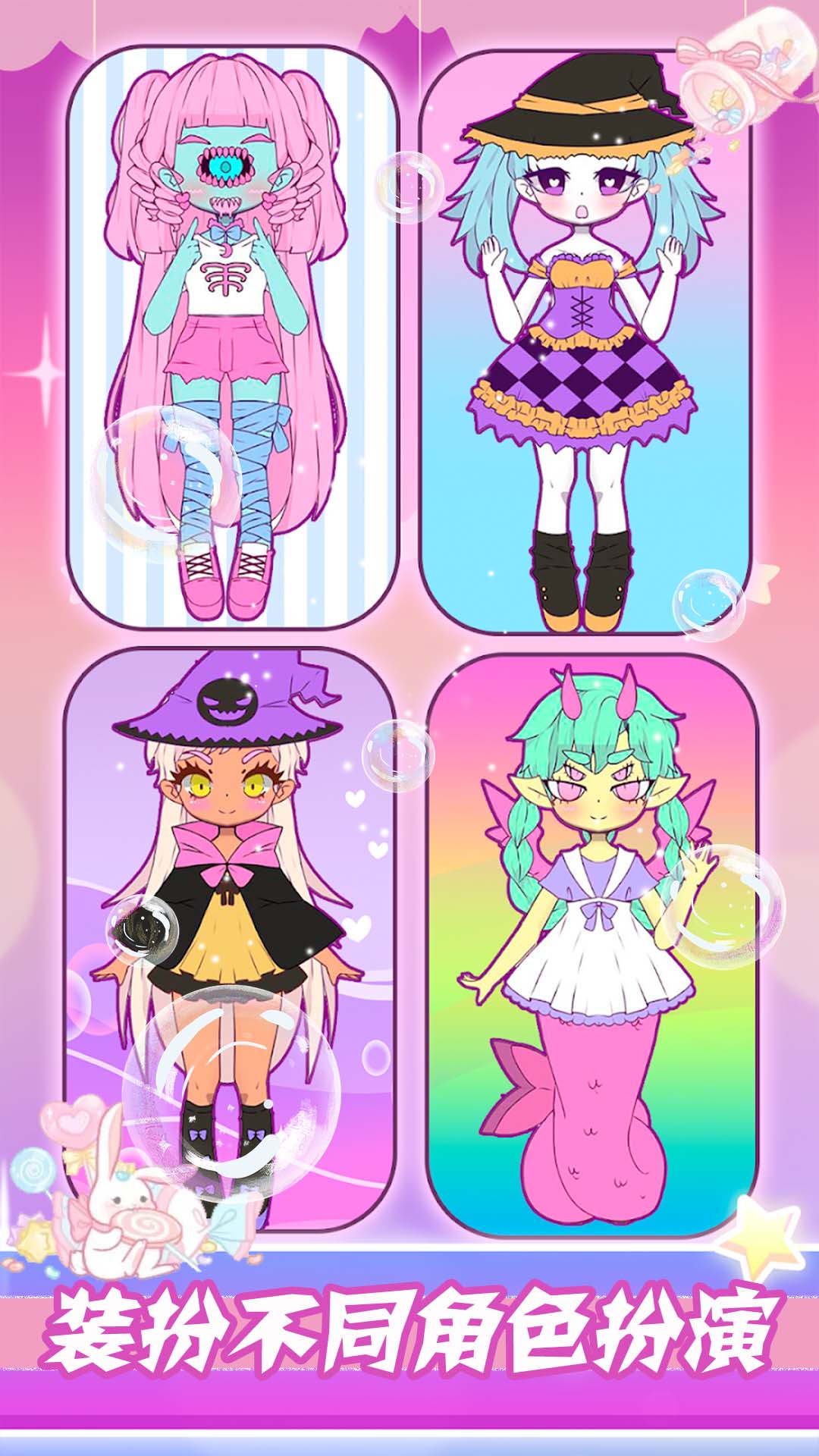 3、给众多的角色打扮成风格多变的时尚女孩,装扮完成之后会有满满的成就感。