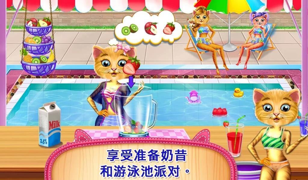 3.玩法特别的丰富多彩,小猫咪在进行派对的时候一定要把泳池打扫干净,才能够让大家玩的更加开心。