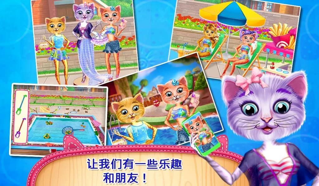 猫咪宝贝的泳池派对是一款可以让玩家看到很多可爱小猫咪的游戏,玩家可以给小猫咪打扮成不同风格的样子,还可以在小猫咪举办派对的时候布置派对的场地,整个游戏都是非常欢乐的氛围,能够让玩家感受到非常的轻松治愈。