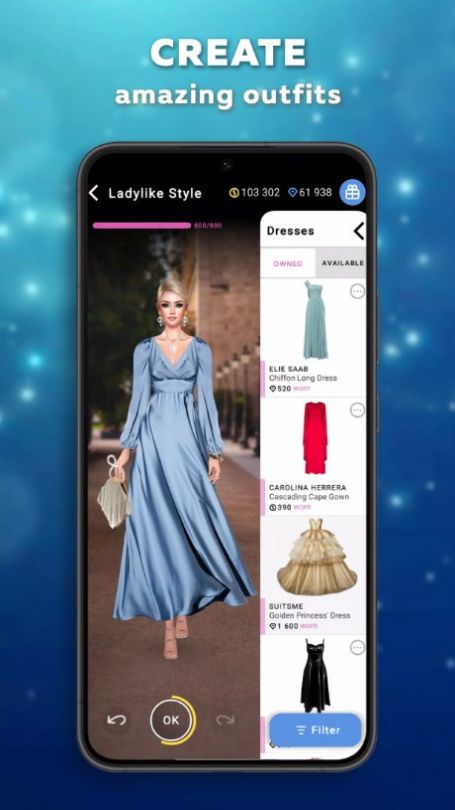 2、提供独家和无尽的服装、配饰、头发和化妆选项,让你自由选择打造自己的时尚风格;