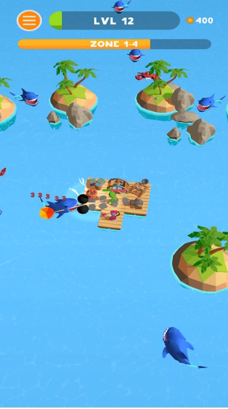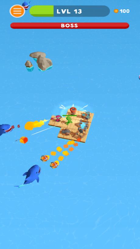 3.不断升级建造你的木筏,确保在方寸之地不断延展,可以有更广阔的的地方生存和建造塔防。