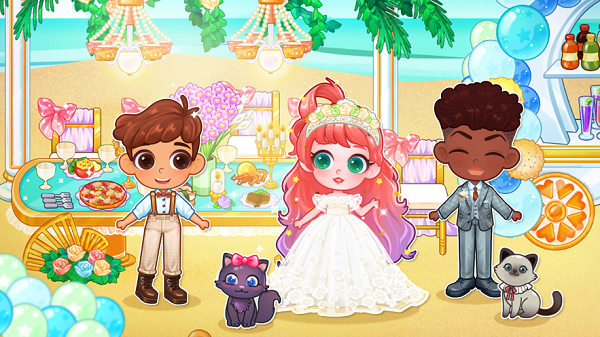 玩家可以自由选择新房,布置家居,设计婚纱、婚戒等婚礼元素,甚至可以规划蜜月旅行,游戏中集合了各种婚礼场景,