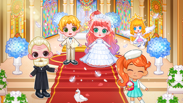 婚礼中有包括教堂、婚纱店、蛋糕店、美发店、鲜花店、海边派对等6个不同的场景;