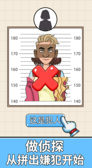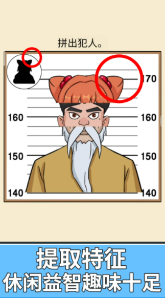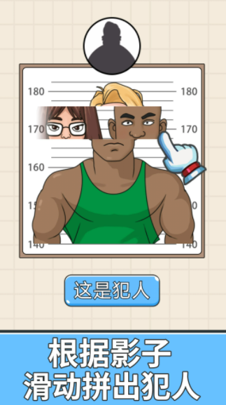 2、通过影子推断出作案者的外貌,然后根据给定的五官来完成拼图,解开谜题。
