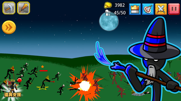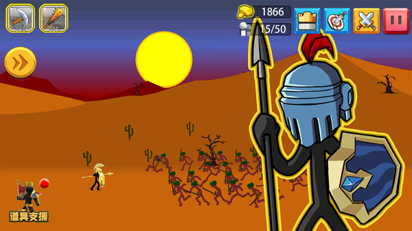 1、一个精彩而有趣的火柴人战略战争游戏。带领你的火柴军队对抗敌人的入侵。