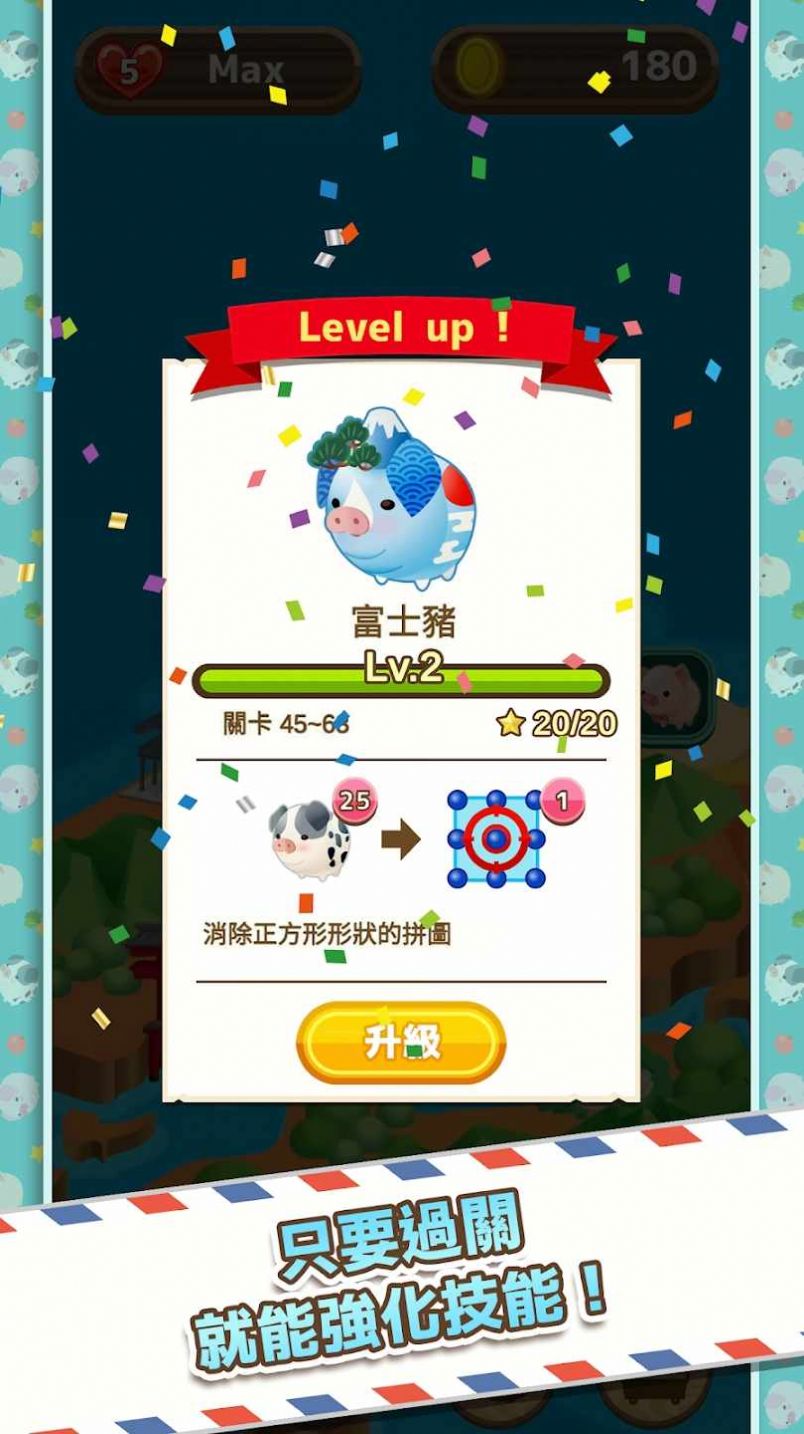 3、游戏中有很多关卡可以消除,绝对可以满足你每次上线都能体验到的游戏内容。