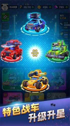 3、大量福利和资源升级战车品质和等级,提升你的战斗力,解锁更多新技能。