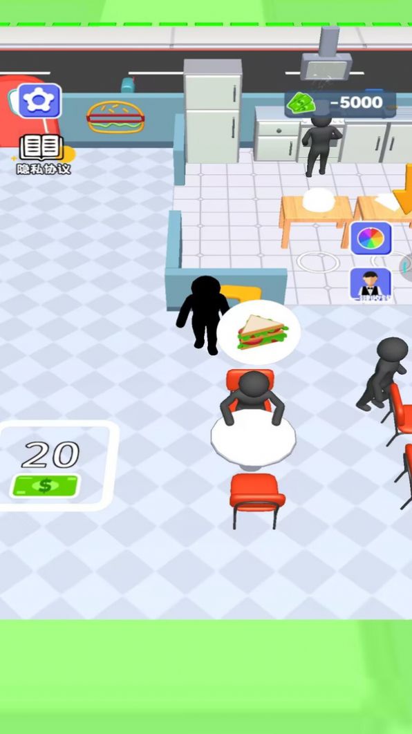 1、除了自己制作美食,还可以雇佣厨师和服务员来完成客人的点单,提高效率;