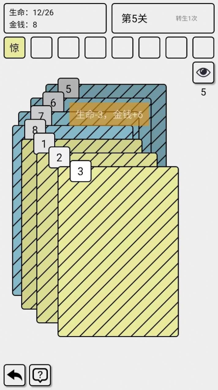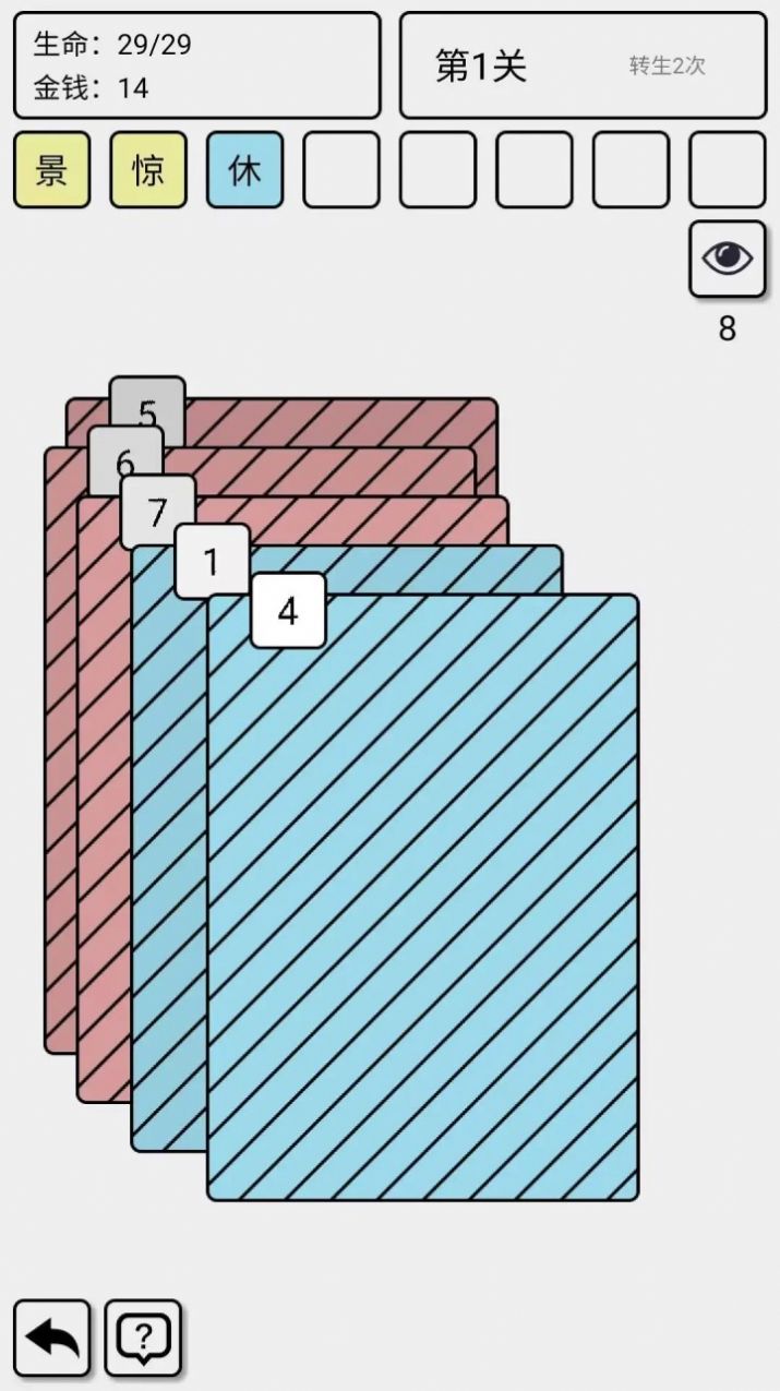 1、游戏中需要通过不断地翻卡,抽牌来使自己的角色存活,变得更加的厉害。